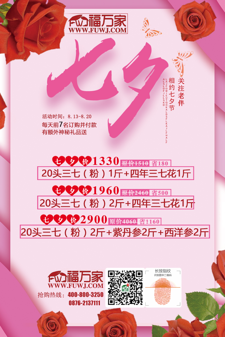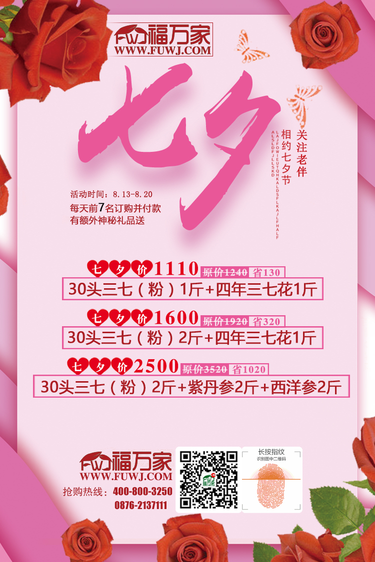 福万家三七为感谢各位的支持与厚爱,现推出“七夕会健康”,爱她(他)就送健康给她(他)。